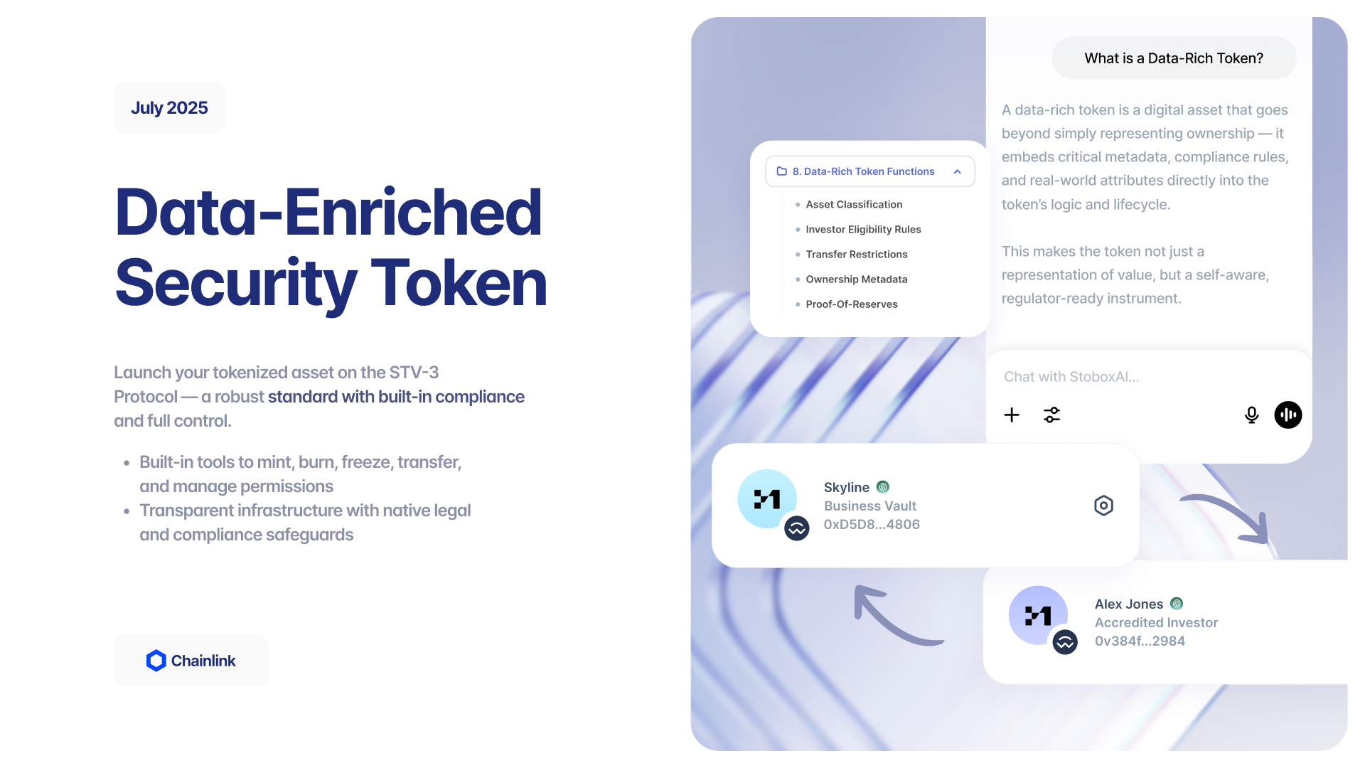 Your security token is created on the STV3 Protocol, Stobox’s purpose-built infrastructure for regulated digital assets. This protocol ensures not just token creation, but enforceability, governance, and long-term asset management.