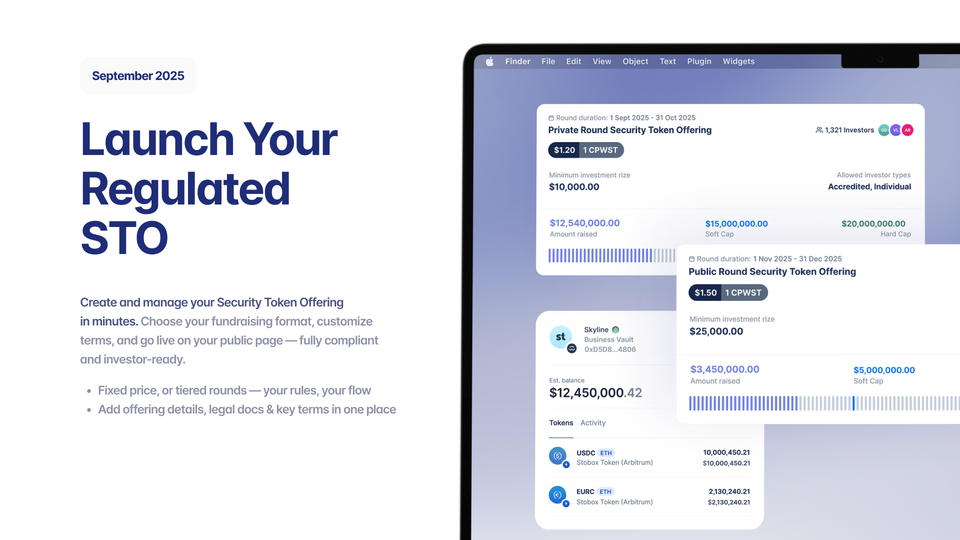With your security token ready and your offering details finalized, you're ready to launch your Security Token Offering (STO) — directly from your own branded Investor Portal.