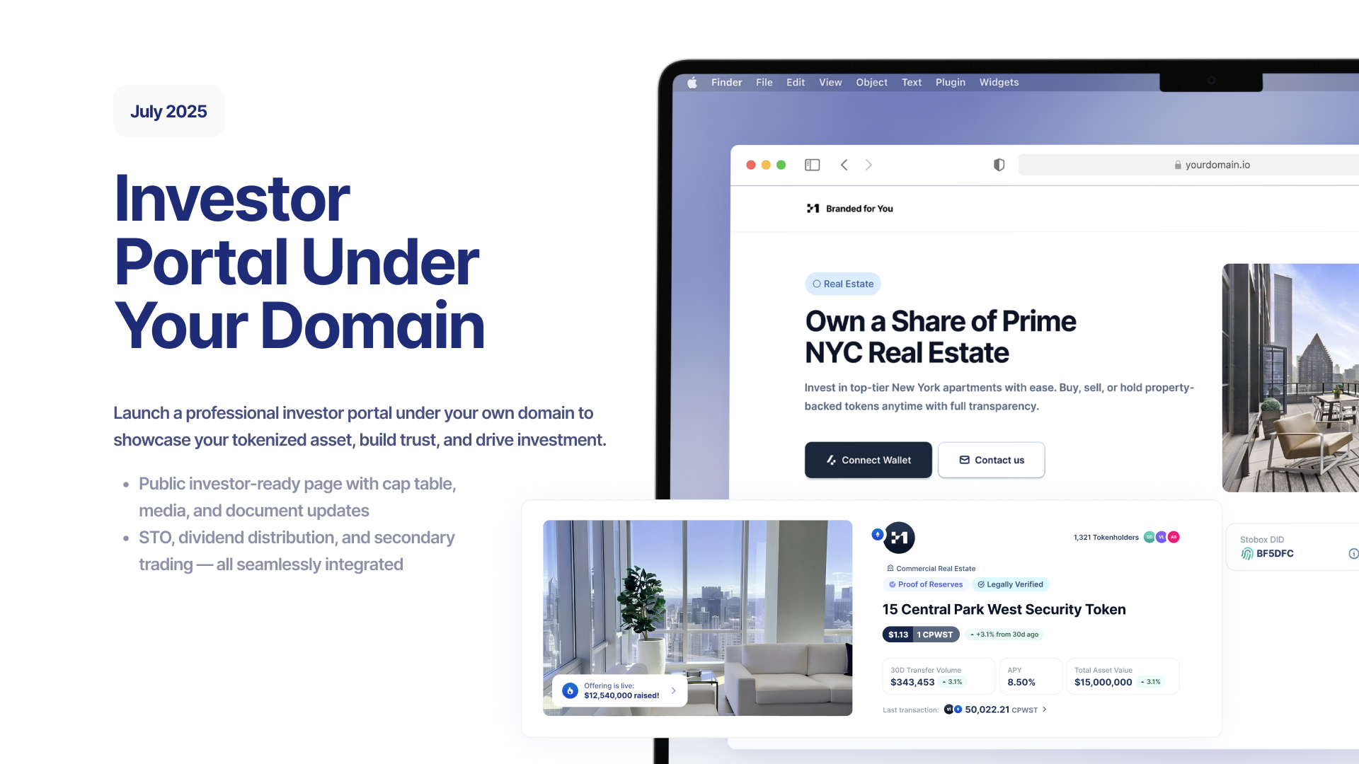 - Build investor confidence with a custom offering page that reflects your brand identity