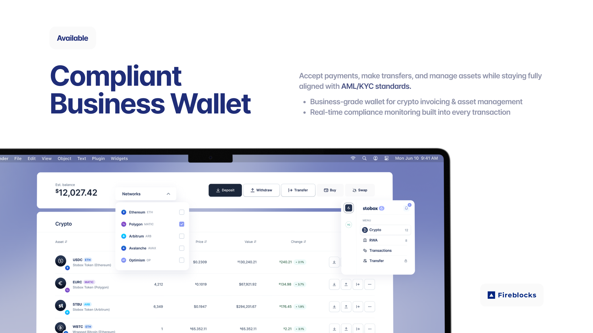 Unlike traditional crypto wallets, which are vulnerable to single-point failures like private key loss or theft, Stobox Wallet divides key control across multiple secure parties. This makes it significantly more secure for businesses while keeping access easy and intuitive.