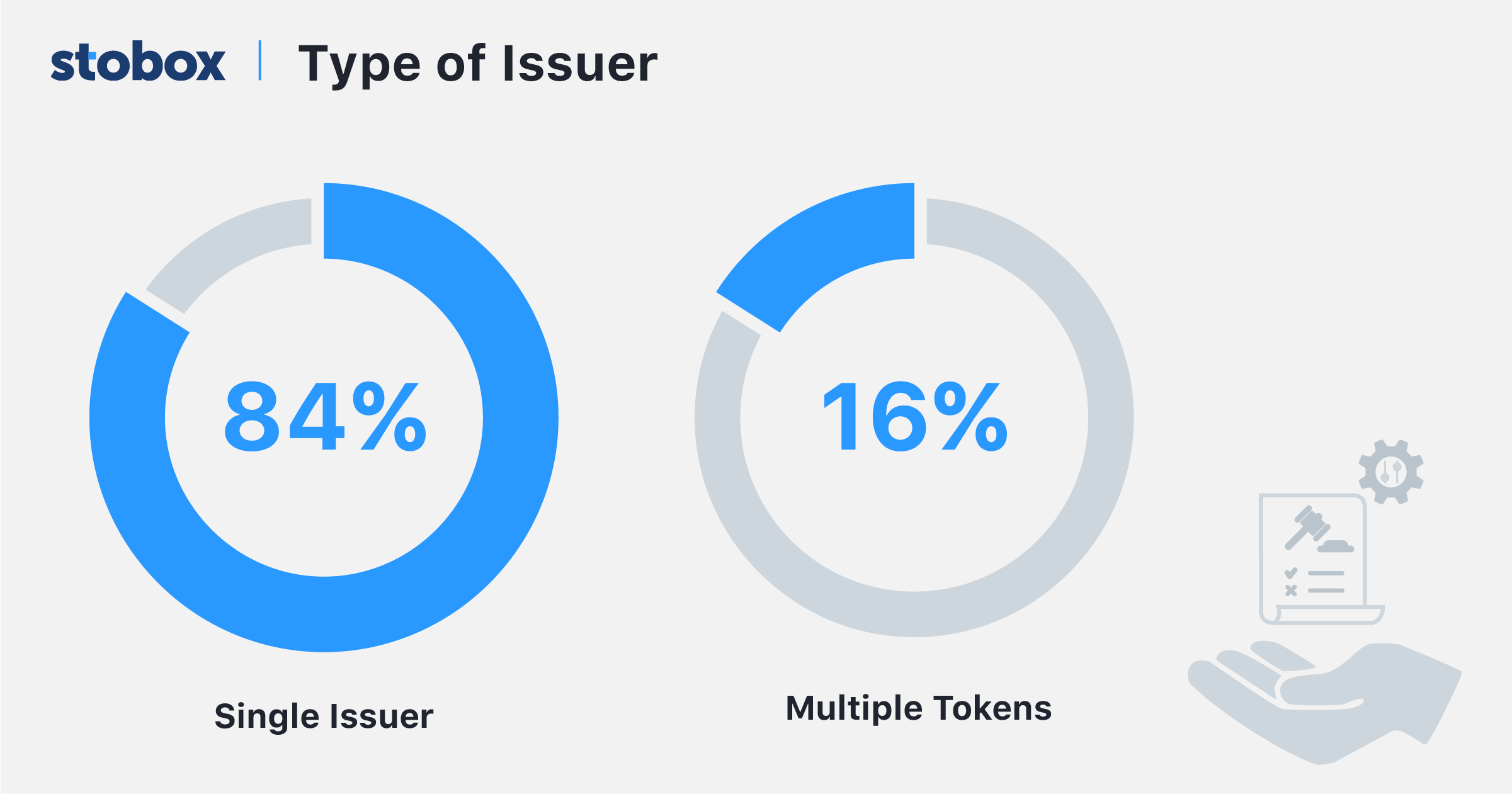 84% of Stobox customers start with the option of issuing a single security token, although many see the potential in launching multiple tokens at once. We see cases where issuers prefer to give their investors a choice between various security tokens that have fundamental differences. For example, one token is a tokenized share of the company, whereas the second is a profit participation certificate or debt token.