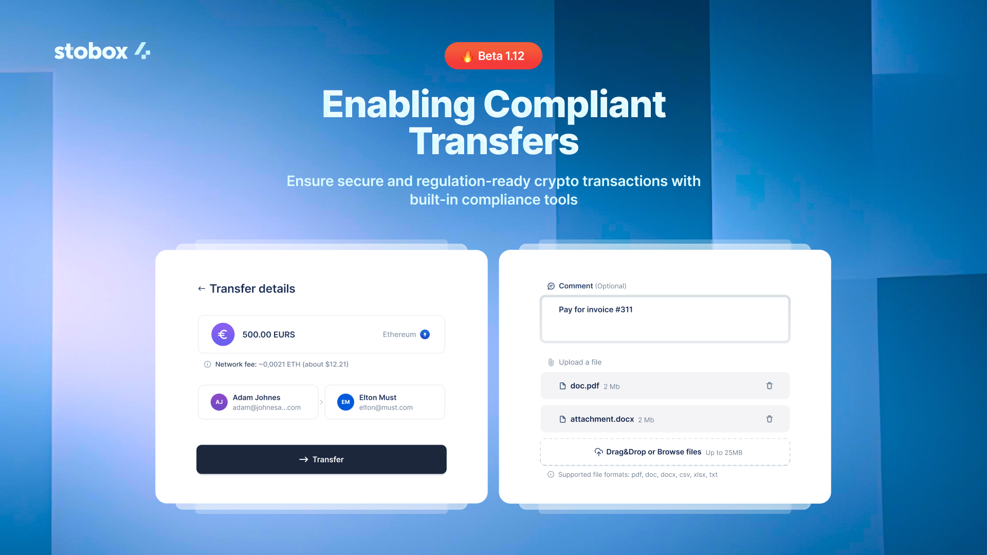- Simplified Transfers. Send crypto seamlessly using email addresses or Stobox Decentralized IDs (DIDs).